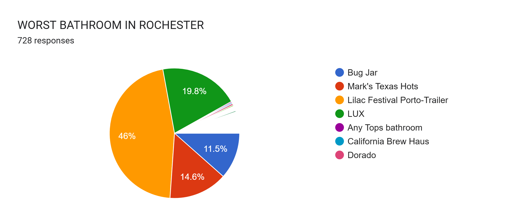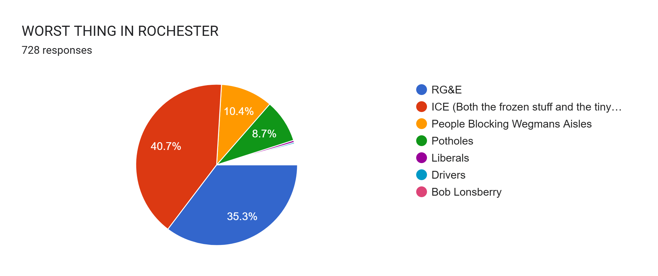 We ended up getting 728 responses for our Worst Of Rochester poll. That’s too many. That’s more people than have ever voted for Mayor.
